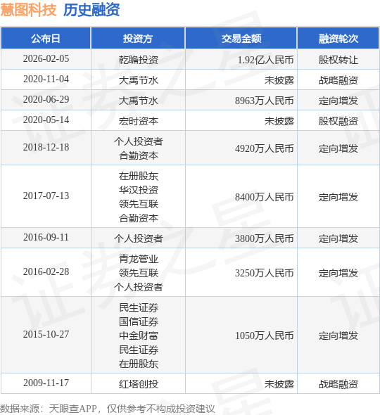 【投融资动态】慧图科技股权转让融资交易额为192亿人民币